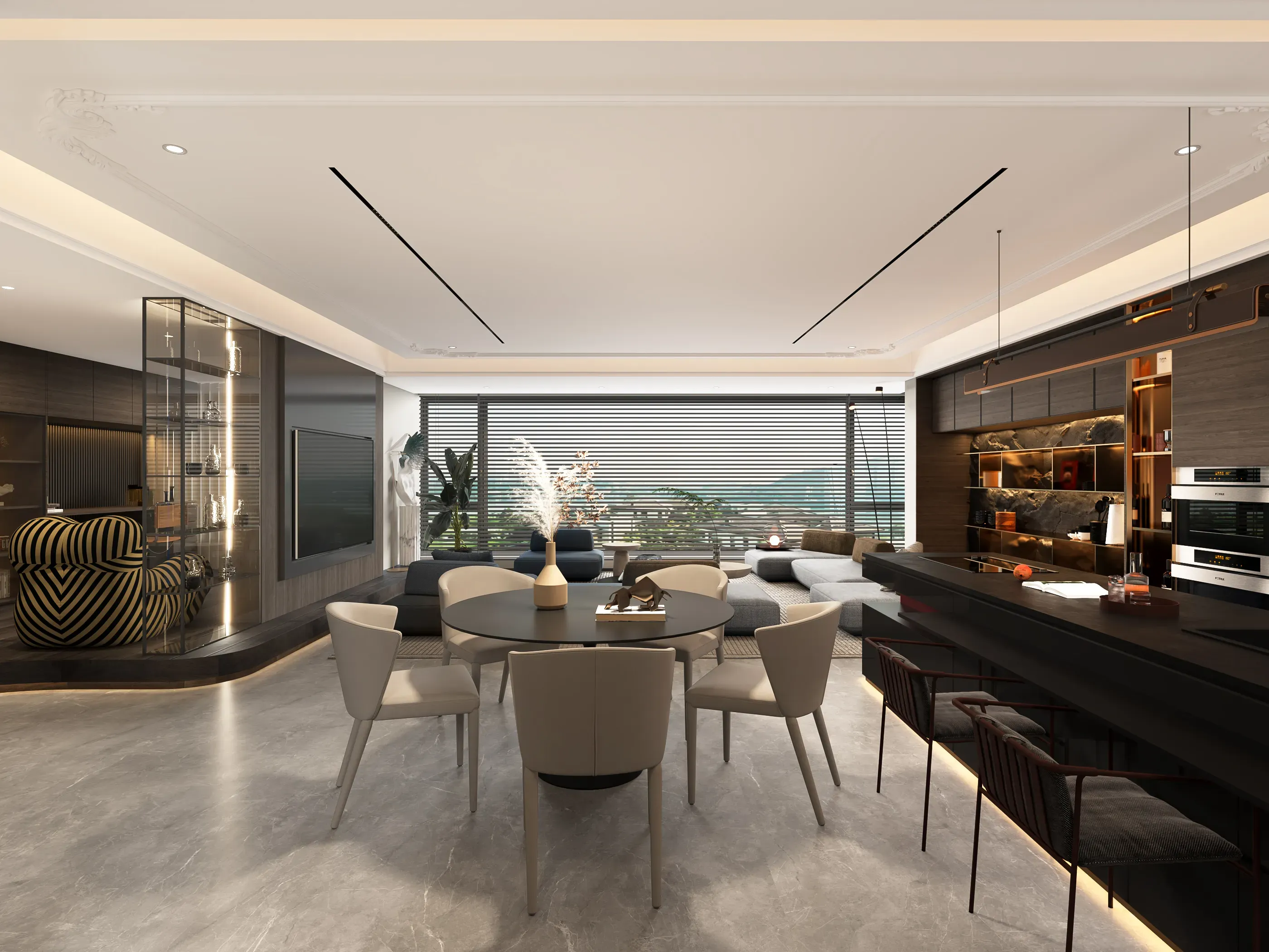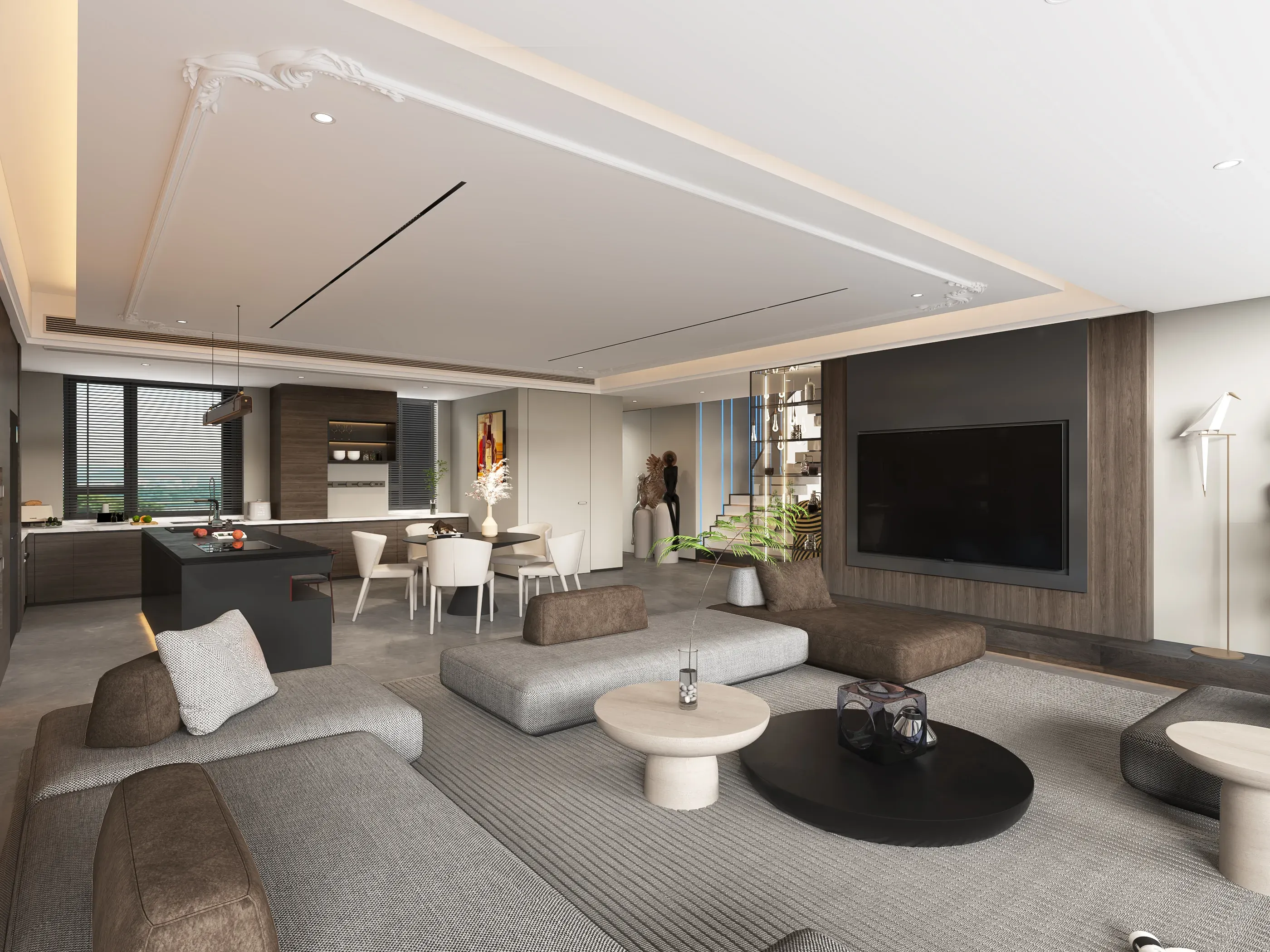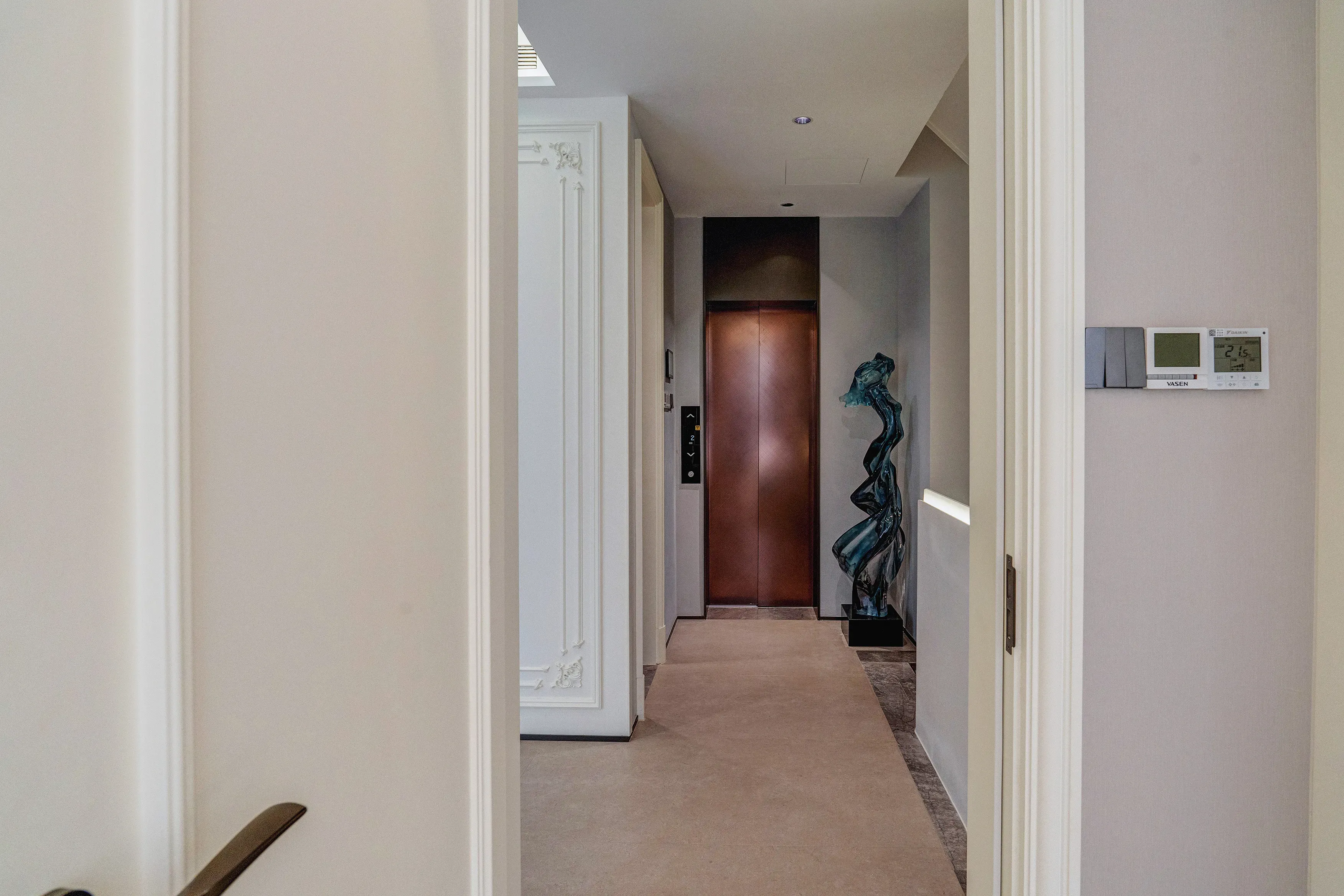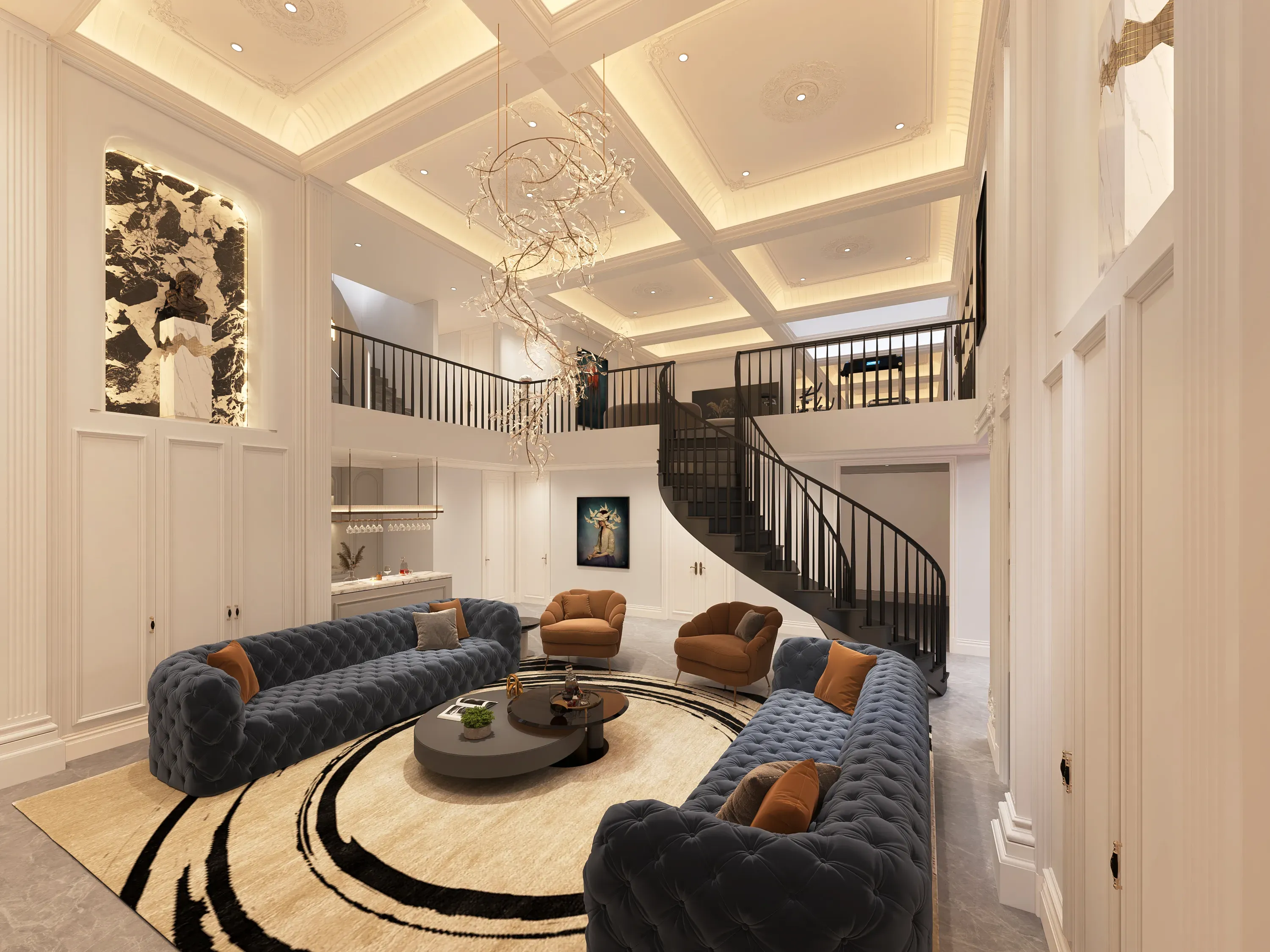 伫立在城市核心区域的高楼大厦,你有仔细品味过吗?耀眼的玻璃幕墙、遒劲的金属骨架、几何感极强的造型、高耸入云的气势,这都是现代建筑的魅力。 这套几米文艺复兴别墅住宅是上下叠拼的下叠,拥有独立电梯入户,无疑是一座融合了古典与现代,东西方文化精髓的居住艺术殿堂。从外立面到室内设计,每一处都透露着独特的设计理念和深厚的文化底蕴。 *18世纪欧洲启蒙主义影响下的建筑审美观特别强调建筑美的理性因素。19世纪初浪漫主义思潮则怀恋中世纪田园牧歌的情调和宗教气氛,给建筑审美观以很大影响。 室内设计风格遵循青岛当地欧洲与中国文化交融的特色,将西方与东方的元素巧妙结合,营造出一种独特的文化氛围。车库直接入户到B2的会客厅,这一设计不仅便捷高效,更增添了豪宅的私密性和尊贵感。